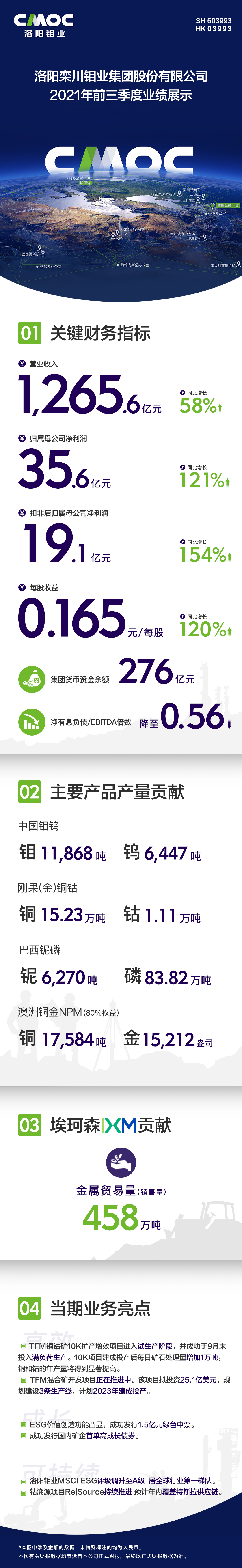 洛阳钼业2021年三季度经营业绩发布