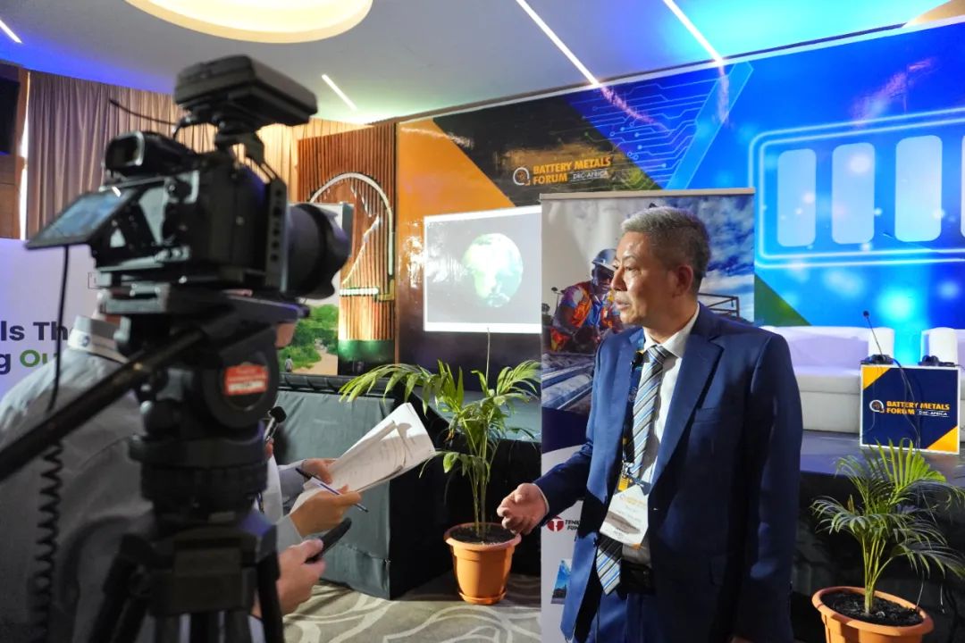 洛阳钼业副总裁、洛钼非洲区负责人周俊,作为本届论坛的赞助方代表致开幕词,并接受了德国之声等媒体的采访。