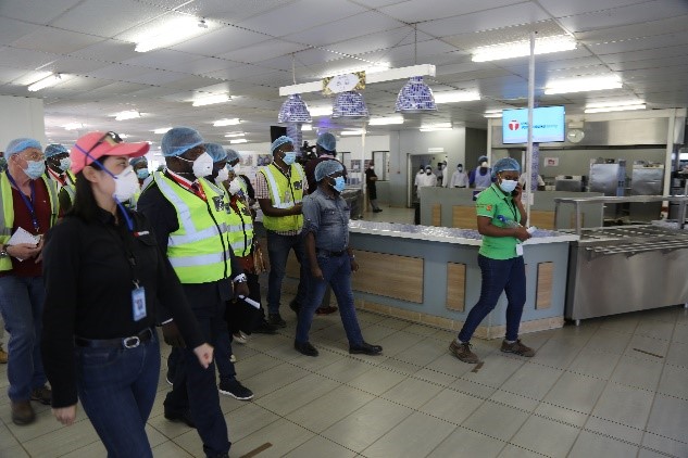 指导小组对Base营地、Mikuba营地和承包商的餐厅、营地和员工宿舍分别进行了检查,询问了部分员工一些具体情况,最后回到Base进行了座谈。指导小组表示TFM各项防控防护措施做得很好。卢拉巴省政府办公厅主任Yannick Tshisola表示:“我们对TFM所采取的员工隔离措施表示满意。TFM是刚果金新冠疫情防控的标杆企业。”