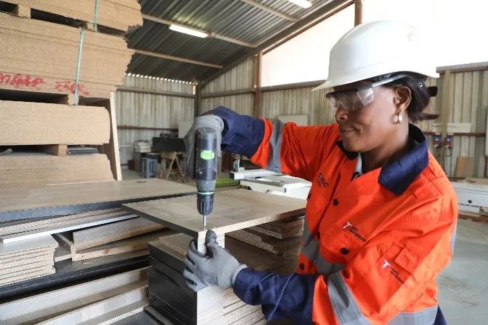 在TFM,女性不仅在行政管理岗位上崭露头角,更在传统男性主导的技术领域里占据一席之地。木工车间的7位女性木工技师就是其中的佼佼者。她们用实力证明了,真正的工匠精神与性别无关。2024年,TFM的地质学家 Nahomie Tshikadi更是荣获了非洲矿业女性领导力大奖。
