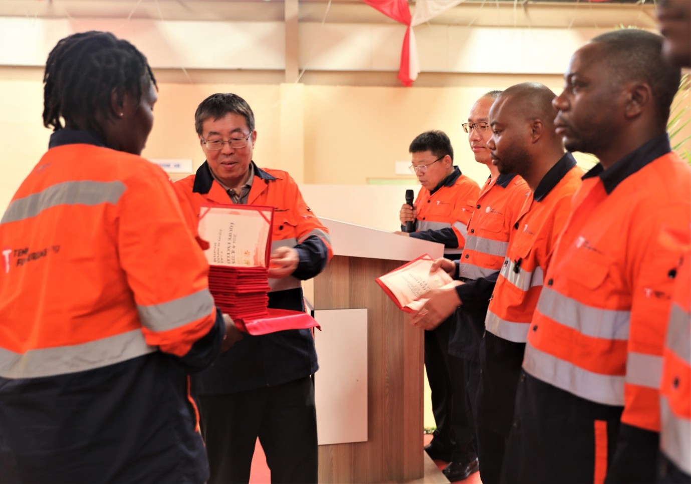 TFM公司CEO张冬松代表管理层向受到表彰的先进集体与个人表示热烈祝贺,向默默奉献、辛勤工作在各岗位的全体员工,以及广大员工家属致以衷心感谢。张冬松回顾了公司2024年所取得的各项成绩,鼓舞广大员工要紧密围绕今年的生产任务,持续发扬挑战不可能的精神,保障矿区生产安全、环境友好,推进中区和东区产能提升,持之以恒推进降本增效工作,携手并进,推动公司全面完成2025年目标,再创新辉煌。