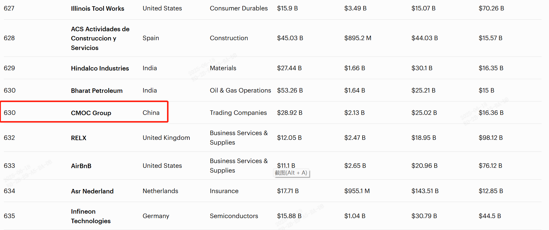 近日,全球知名商业杂志《福布斯》公布了2025全球企业2000强榜单。洛阳钼业排名第630位,再次登榜。