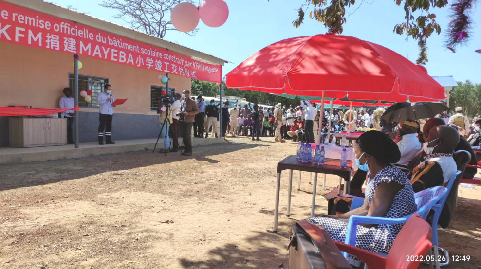 5月26日上午,晴空万里,由KFM公司捐建的马伊巴村小学竣工交付仪式在欢快热烈的氛围中举行。崭新的校园,完善的设施,为当地孩子们送上了最好的“儿童节”礼物。学校 350 余名师生和全体村民共同见证了这一时刻,村民们载歌载舞,用欢快的舞蹈表达了喜悦的心情和真诚的感谢。学生MUSHID KAYEMB OBEDE激动地说:“今天是我和同学们最高兴的日子,以后终于可以坐在漂亮的教室里上课了,感谢KFM,感谢所有为此付出的人们。”