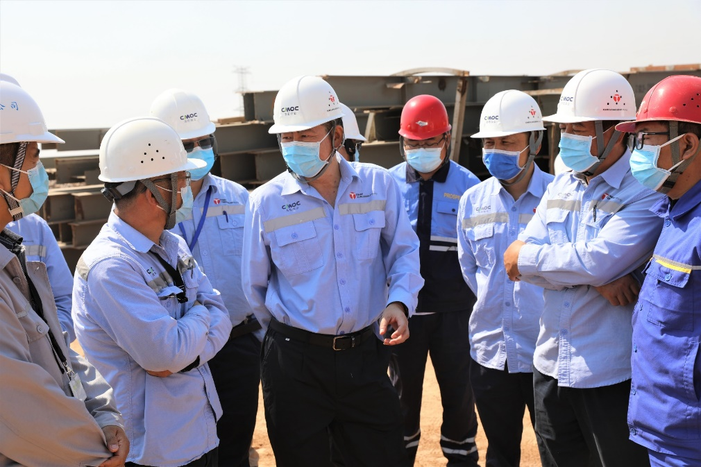 周俊一行先后察看了中区粗碎站、中间矿堆重板给料机、顽石破碎、浮选车间、磁选车间等设备安装情况,以及东区1-2号破碎站、矿石中间转运站、丰谷鲁美南沿基建剥离现场、2#运矿涵洞、中刚方营地、中间矿堆和焙烧制酸、沉钴、电积、萃取等车间建设情况。每到一处,周俊看图纸、听汇报、询进度、问安全,与施工方管理人员交流,详细了解施工单位人、材、机准备,技术装备,工期合同,以及物流运输和工作中存在的问题,分析现场管控要点、难点,并作出工作安排。在察看中区设备安装时,与现场管理人员和施工单位讨论了中区焙烧、制酸建设计划,对确保完成里程碑节点计划的相关措施做出明确要求;在察看东区中刚方员工宿舍施工现场时,要求中方员工宿舍、食堂尽快完工,确保中方生产技术、相关管理、后勤人员能够提前入住;在与各施工单位及监理方负责人交流时,要求东区监理部尽快配足相关专业技术人员力量,做好项目安全、质量、进度监理;要求各施工单位紧盯时间节点、压实工作责任,加快工程进度、保障施工安全,确保如期高质量完成建设任务;要求TFM现场管理团队充分、及时与集团公司相关职能部门沟通,按优先顺序做好物资、设备进场的协调和组织,齐心协力推进混合矿项目尽早投运。同时,指示综合、安全等业务部门提前做好项目投运前的相关准备。