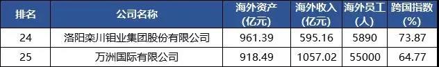 洛阳栾川钼业集团股份有限公司以961.39亿元的海外资产上榜,排在100大跨国公司榜单的第24位。